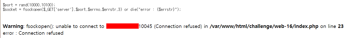 port에 10000~10100에 랜덤 값을 부여하고, IP:port에 접근해 실패 시, 에러를 출력한다.