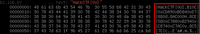 저기 HackCTF{0U]라고 보이는 부분이 있다.