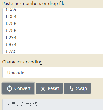 해당 사이트에 들어가, Encoding 방식을 바꾸던 도중, Unicode에서 뭐가 걸렸다.