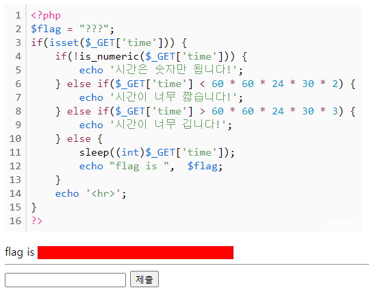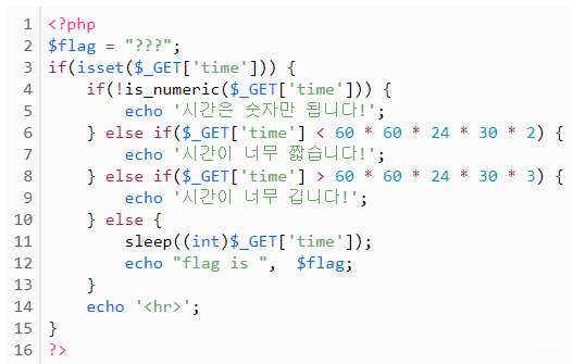 여기서 우리는 sleep 함수 내부에서 int 형변환과 is_numeric 함수에 주목해야 한다.