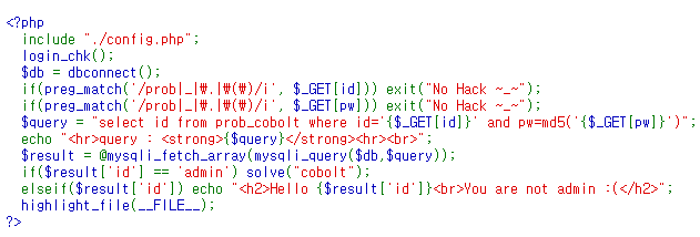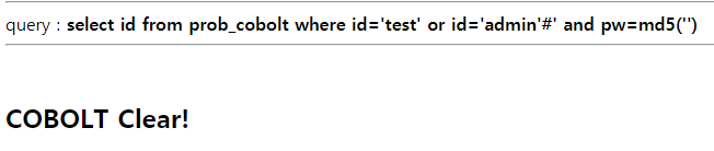 기본적인 SQL Injection 문제와 달라진 것이 있다면, pw에 md5 함수가 추가되었다.