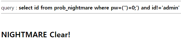 Filtering 되지 않은 주석은 ;%00이 있으니, ('') = False라는 점을 이용해 Query문을 짜봤다.