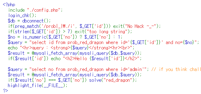 $query = "select id from prob_red_dragon where id=''||1#' and no={$no}";