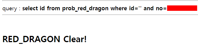 $query = "select id from prob_red_dragon where id=''||pw>#' and no=%0a(숫자)";