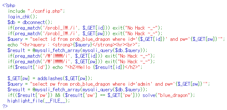 그러나, 코드를 자세히 보면, query를 보내고, preg_match 함수가 실행된다.
