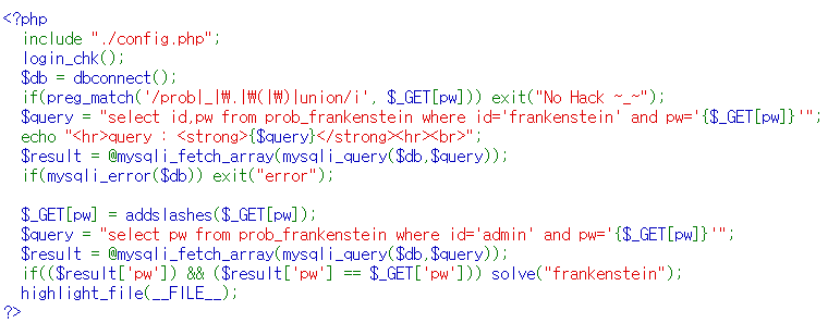 먼저 addslashes 함수를 피하기 위해서, admin 값을 hex 값인 0x61646d696e로 바꿔줬다.