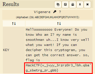 다시 Vigenere로 돌리면 flag를 얻을 수 있다!