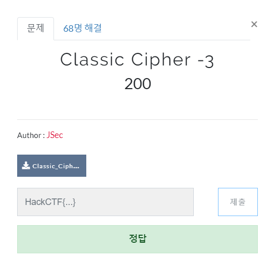 | [HackCTF] Classic Cipher -2 풀이 (150p) (0) | 2020.07.12 |
