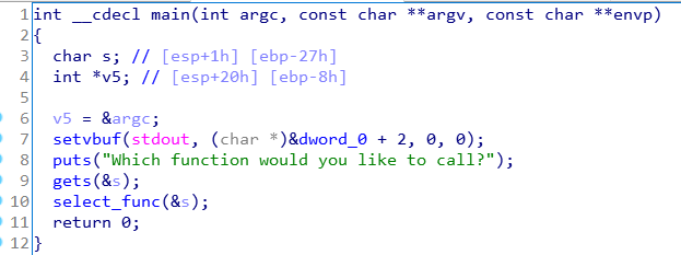main 함수 부분이다. gets로 s를 입력받고, select_func 함수에 s를 넘겨준다.