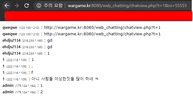 56215라는 숫자가 나왔다. 이 값을 chatview.php에 넣어보자.