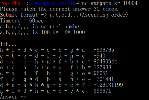 먼저 서버에 들어가면 연립방정식 문제가 주어진다.
