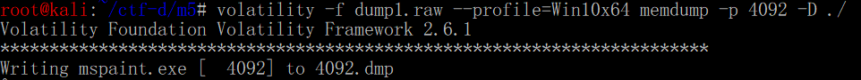 "root@siftworkstation:/CTF/google/# vol.py -f dump1.raw --profile=Win10x64 memdump -p 4092 -D ./"
