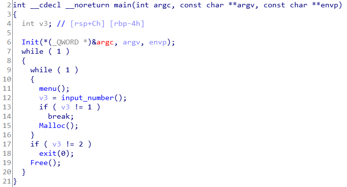 1번 메뉴에서는 malloc을 받고, 2번 메뉴에서는 free 기능을 수행한다.