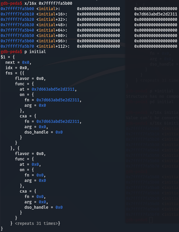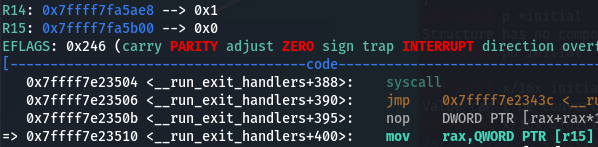 __run_exit_handlers+400에 bp를 걸고 값을 확인했더니 0x7ffff7fa5b00이다.