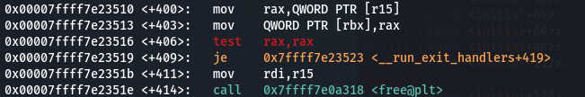 해당 코드는 __run_exit_handlers (exit.c) 인데 free(cur)이 call 되기 위해서는 두 개의 조건을 통과해야 한다.