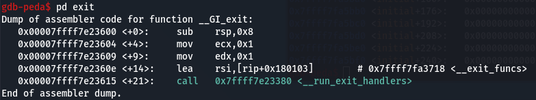 전에 FULL RELRO 풀다가 exit 함수에서 free 함수를 call 한다는 사실은 알고 있었기 때문이다.