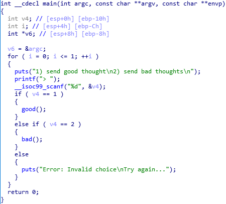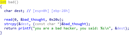 Only using bad func, we can't attack BOF vulnerability. (Length of bad_thought is 0x20 and dest variable exists at [ebp - 0x28])