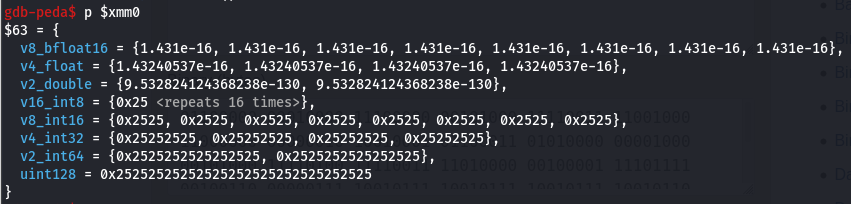 ์ด๋ฐ ์์ผ๋ก xmm0 ๋ ์ง์คํฐ๊ฐ ์ค์ ๋์๋ค. ๊ทธ๋ ๋ค๋ฉด ์ด ์ํ์์ ๋ค์ ์ด์ ์ ์ ์ฉ์ํค๋ฉด ์ด๋จ๊น?