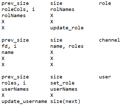 취약점은 update_username 함수에서 발생한다. username의 size는 최대 32칸 까지만 입력해야 하지만, 40칸까지 입력이 가능해 update_username을 가리키는 포인터를 덮어쓸 수 있다. 해당 부분을 set_role 함수로 바꿔 권한을 상승시키고, 2번 채널을 읽으면 flag를 획득할 수 있다.