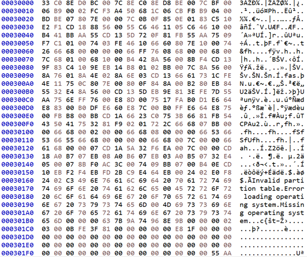 000301BE번이 0x00이라고 나와있습니다. 0x00 -> 0x80으로 바꾸고 부팅을 시도해봤습니다.