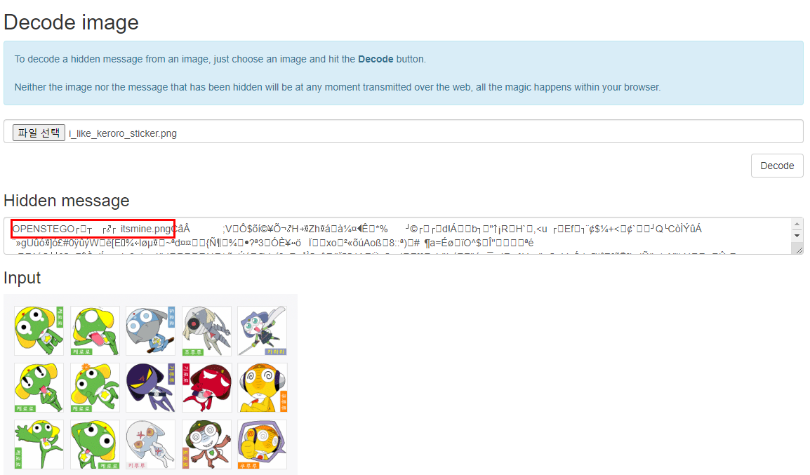 아마도 Steganography 문제같다. 한번 온라인 디코드 툴에 돌려보자.