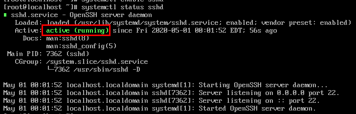 이제 다음 명령어를 통해 SSH Service를 시작하고, SSH daemon이 부팅 시 자동으로 활성화되게 설정해줍니다.