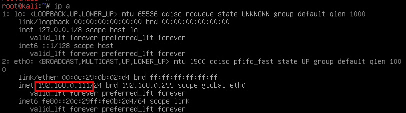 내 칼리 리눅스의 IP는 192.168.0.111 이다.