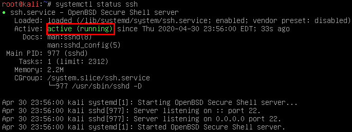 먼저 칼리 리눅스에는 기본적으로 SSH 패키지가 설치되어 있습니다.