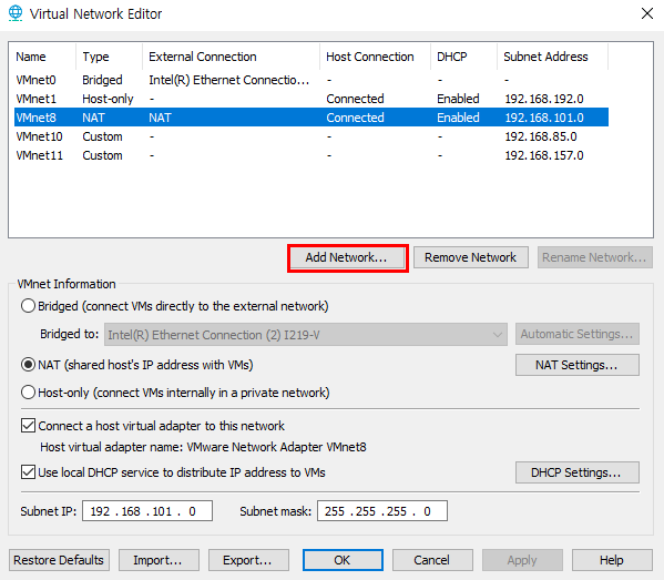 VMware에서 사용하는 네트워크를 VMnet이라고 칭한다.